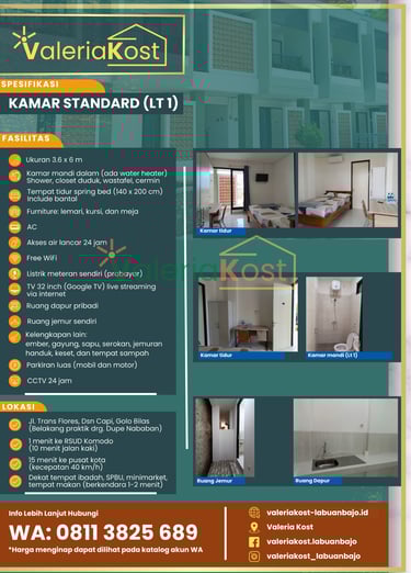 - Meteran listrik sendiri (khusus sewa bulanan, token diisi oleh penghuni)