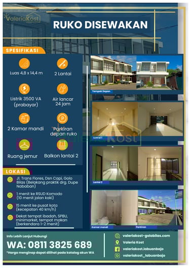 Disewakan 1 unit ruko 2 lantai, info selanjutnya bisa melihat brosur ini