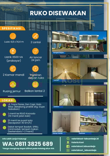 Disewakan 1 unit ruko 2 lantai, info selanjutnya bisa melihat brosur ini